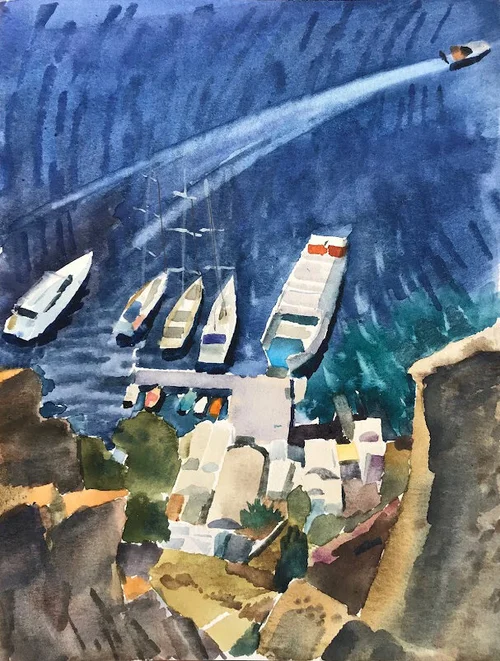 It’s a (relatively) small box of watercolor paints that I carry wherever we travel… I have a lot of respect for this medium: it is challenging, but allows for fixating in time most spontaneous feelings and emotions